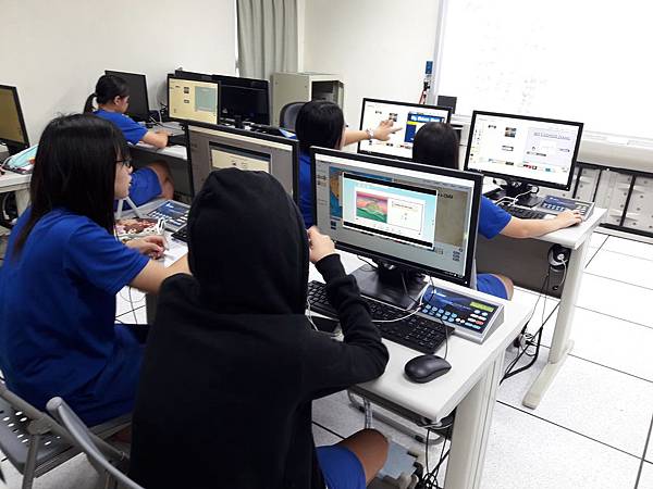 我帶學生至語言實驗室上機操作: