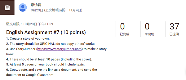 第二次是在教完某課故事後,請學生利用StoryJumper創作一本故事書,主題不限。