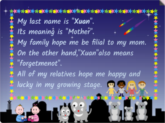 教學心得:學生在做這項作業時,我發現他們充滿表達潛力與創造力,一開始直呼作業太困難,不知道內容要寫什麼的學生,最後也都順利完成,而且結果相當令人滿意。使用StoryJumper的好處是:學生在作故事書的過程中,可以練習用文字表達想法,將課堂所學知識現學現賣,實際活用,此外,他們也可以利用錄音功能為故事書錄音,訓練自己的口語表達能力。有一些用心的學生會多花時間將故事書美化,他們因此在編排故事書的過程中,展現了自己的多元智能,也因為專業級的作品得到老師與同學不少讚美。