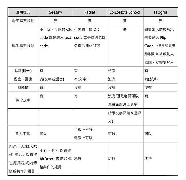 最後,我根據個人的使用經驗,整理了幾個「可以錄製影片、又可以立刻分享給全班欣賞」的應用程式,提供給有興趣的老師參考: