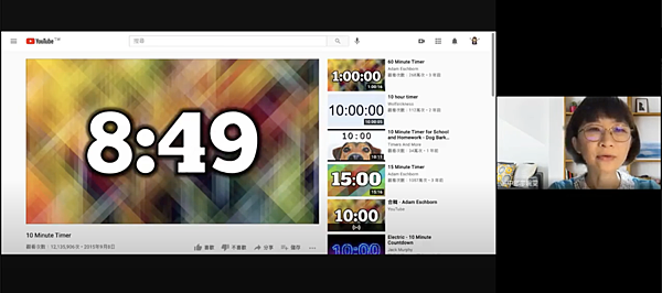 (3) 點選後再分享畫面,學生就會看到計時提醒,如下圖: