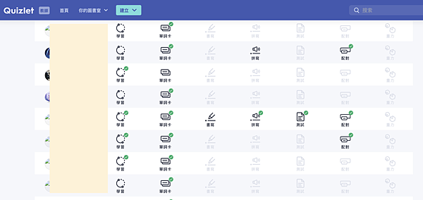 接下來後半節課,我請學生用 Quizlet 做單字練習,因為我有付費,所以可以追蹤學生的進度(真的是錢撒下去換效率),這樣學生在螢幕那端有沒有在練習,我可以清楚掌握,如下圖: